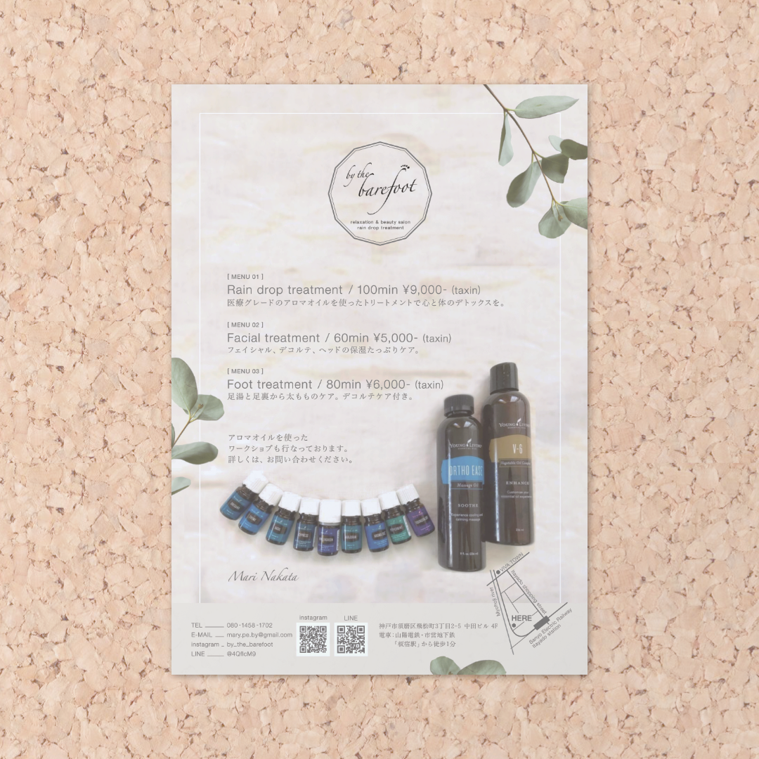 - 前回制作したシンプルな文字のみのロゴに、キャンドルと葉をモチーフにしたイラストをグレー1色で背景に加えました。