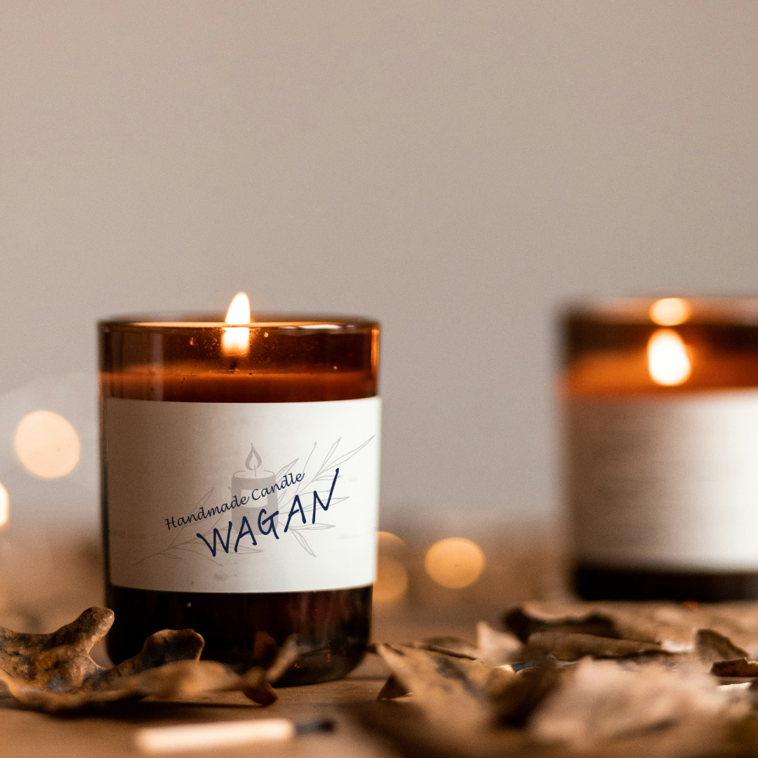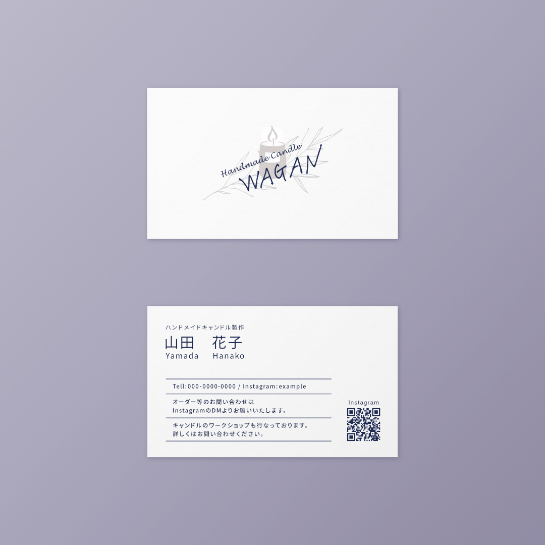 ハンドメイドキャンドル作家 「WAGAN」 の名刺とラベルシールを制作させていただきました。